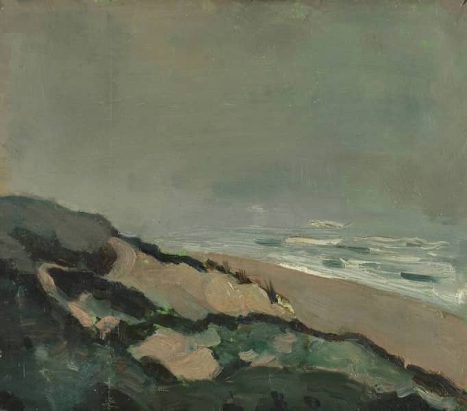 Geen onderwerp is meer geliefd bij waterschilders dan de zee. Geen onderwerp biedt immers zoveel variatie in licht, kleur en beweging. Jan Toorop schilderde deze twee gezichten op de zee bij Katwijk omstreeks 1900 kort na elkaar, maar volkomen verschillend in stijl, techniek en atmosfeer.