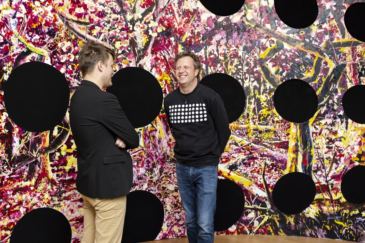 Maandenlang werkte kunstenaar Rombout Oomen (1975) bij NDSM-FUSE in Amsterdam voor het publiek aan het 8 meter lange panorama The Rule of Law. Het schilderij heeft een doorsnede van maar liefst 5 meter en een hoogte van bijna 3 meter. Met behulp van VR-techniek schilderde Oomen het werk van 180 graden met ‘zwarte gaten’, bollen in een diepzwarte kleur die het panorama optisch vervormen. Samen met de soundscape van componist Bart Huskes, ervaar je The Rule of Law met je ogen en je oren. Open je zintuigen!